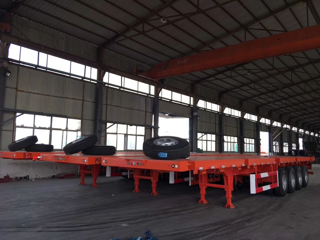 Der hier beschriebene Flachbett-Halbanhänger ist ein 18-Rad-Flachbett mit zwei Achsen, der Stabilität und Unterstützung für die schweren Lasten bietet, die er tragen soll.Die Verwendung von zwei Achsen sorgt für eine bessere Gewichtsverteilung und verbessert die Gesamtleistung des Anhängers auf der Straße.